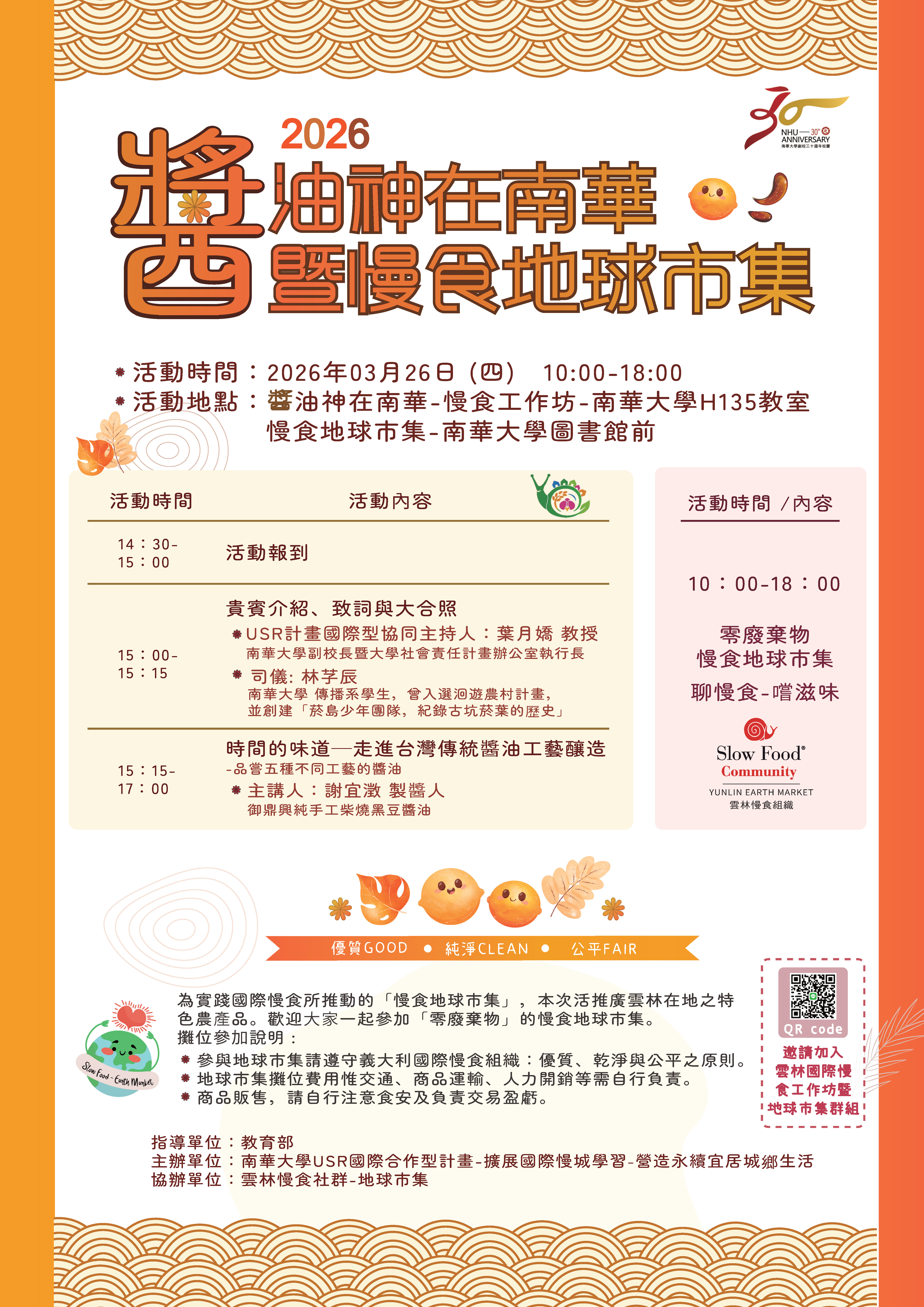 「醬油神在南華」慢食工作坊」活動紀錄所需。